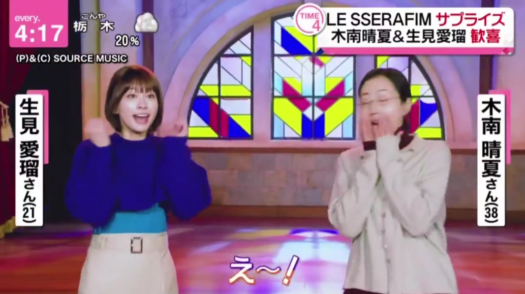 르세라핌이 나오자 일본 배우들의 화들짝 놀라는 표정이 인상 깊습니다.